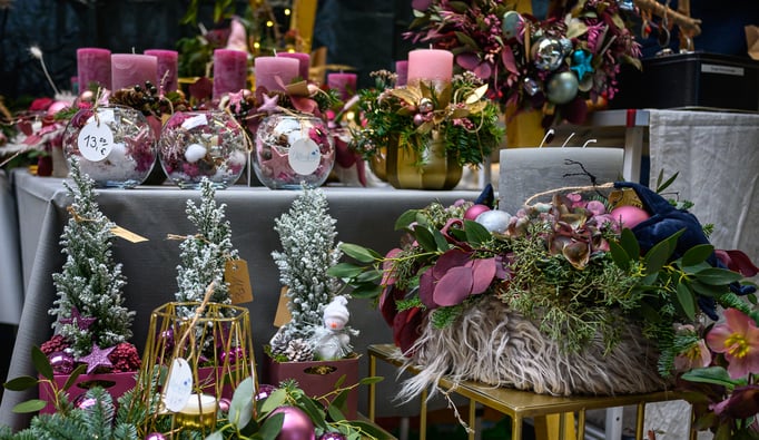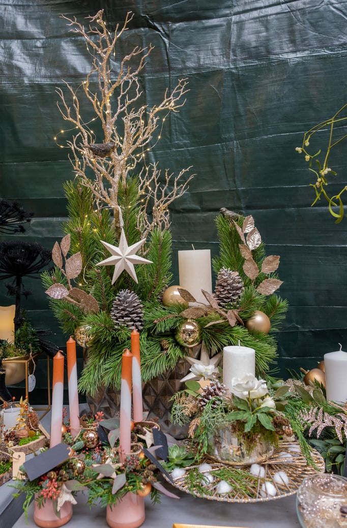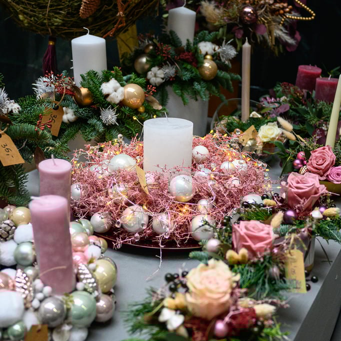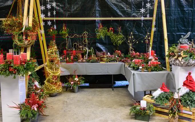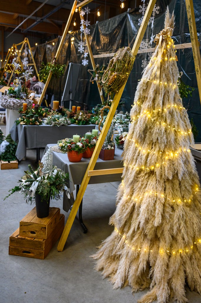 Neben der floralen Weihnachtswelt der Ostseeblüte präsentieren 17 Aussteller ihre Produkte rund um Dekoration, Geschenke und Genuss. Mit dabei sind unter anderem Imkerei Fork, Fest Verknotet, Hof